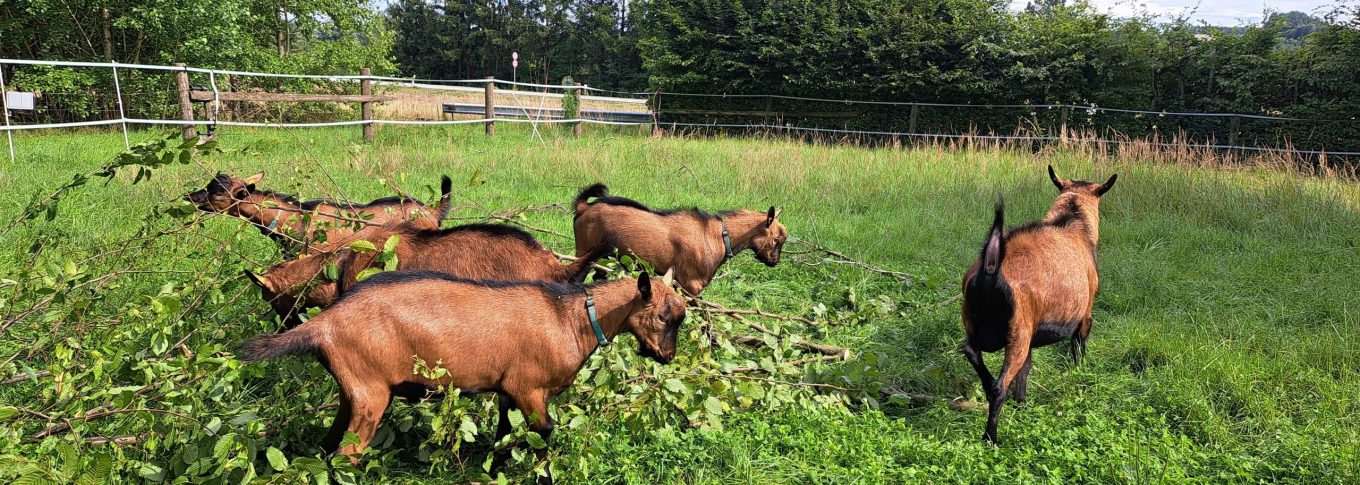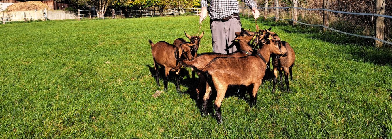 nah dem Fluß "Rott". Neben einer kleinen Herde BDE-Ziegen, Bunte Deutsche Edel-