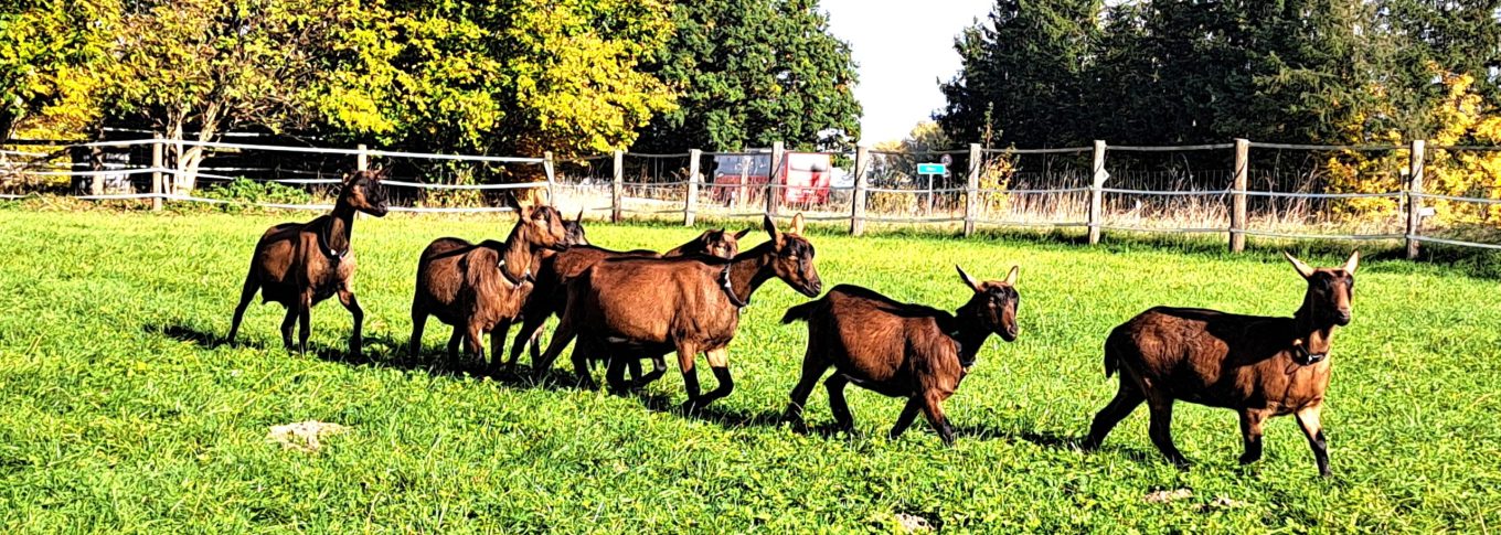 ziege, im Farbtyp Frankenziege, die wir in Herdbuch züchten, halten wir ganzjährig
